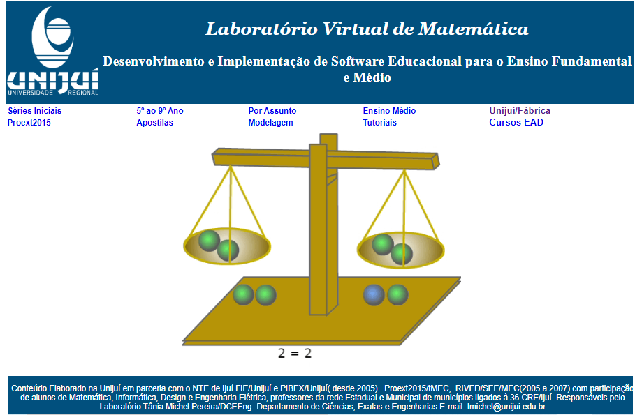 Olá amigo(a)! Sou Tânia Michel Pereira(tmichel@gmail.com), professora de matemática na UNIJUí há quase quarenta anos, amante de informática. Para acessar os materias do Laboratório Virtual de matemática da UNIJUÍ, que esté em período de manutenção, mesmo assim, é possível acessar o mesmo, clique sobre a imagem abaixo